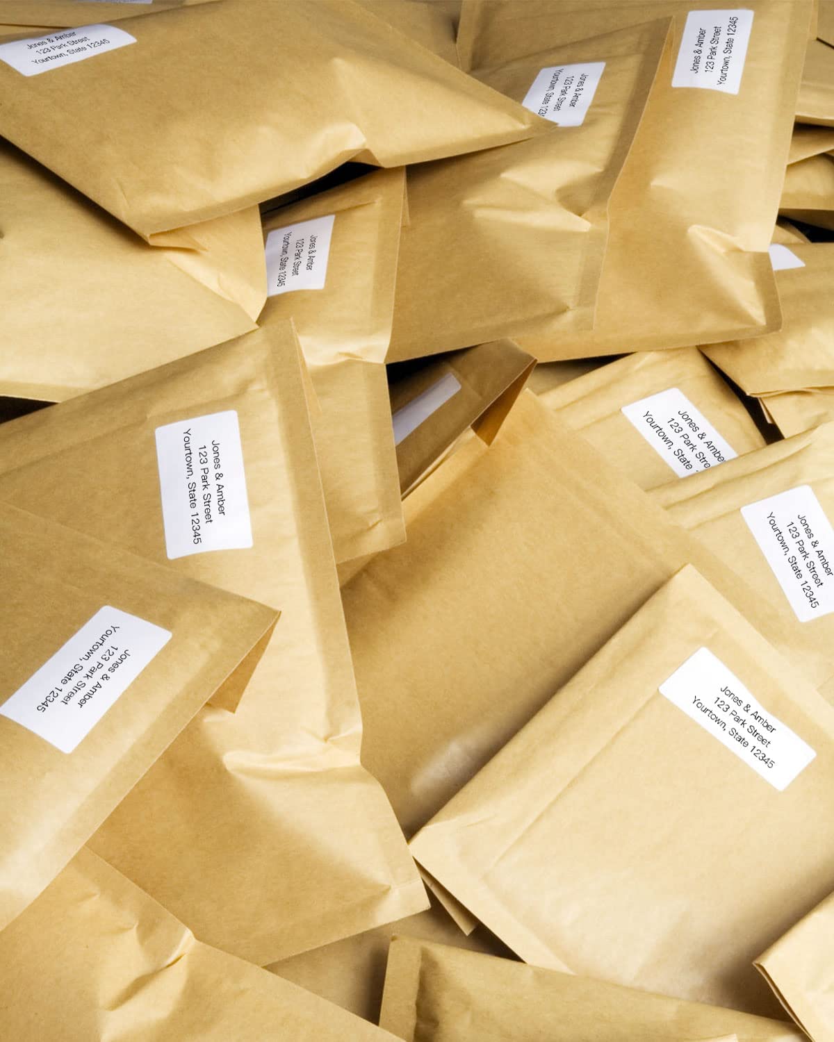 - 【Multi purpose label】 Mailing address labels are suitable for FBA transportation, mailing packages, Christmas labels, organization stickers, warning warehouse signs, Thanksgiving Day labels, creating custom stickers and labels. Mailing Labels can be easily pasted on express boxes, parcels, metal, plastic, glass, cardboard, corrugated boxes, envelopes, plastic bags and more.