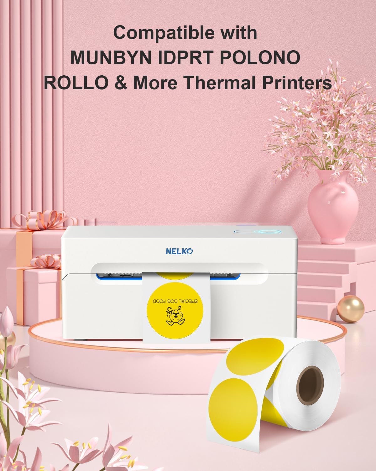 Nelko 2 Inch Yellow Circle Thermal Stickers Labels 750 Labels/Roll