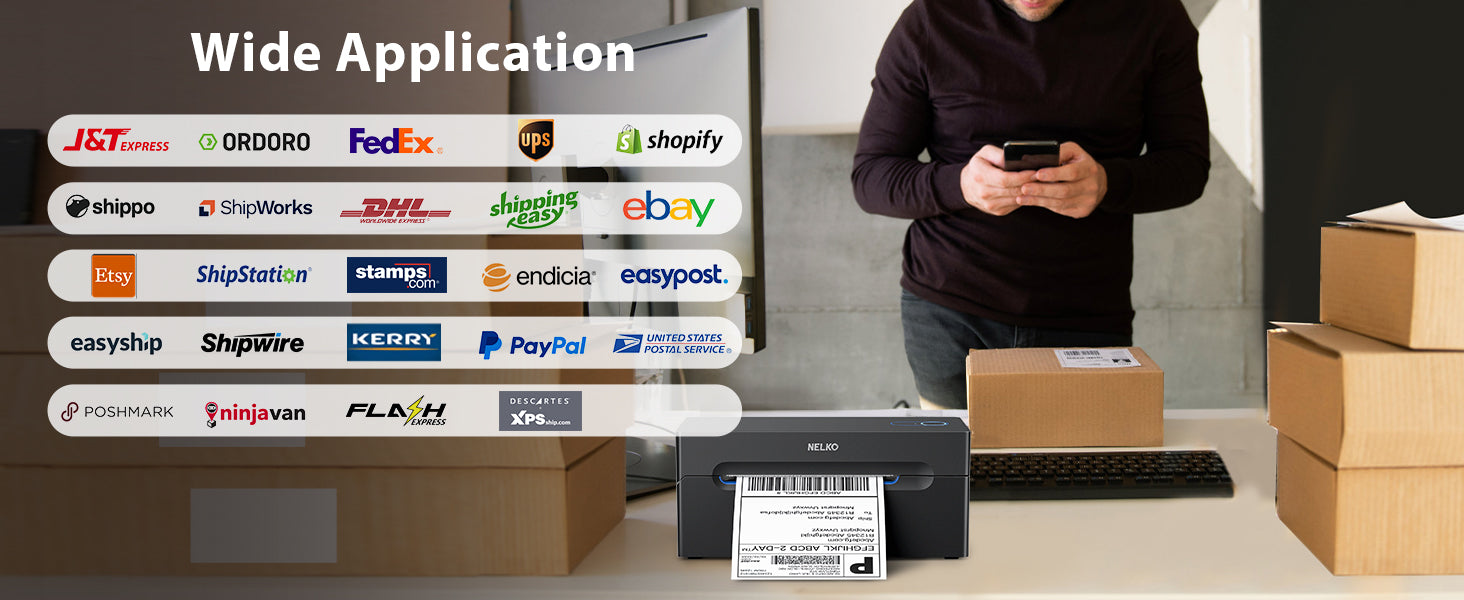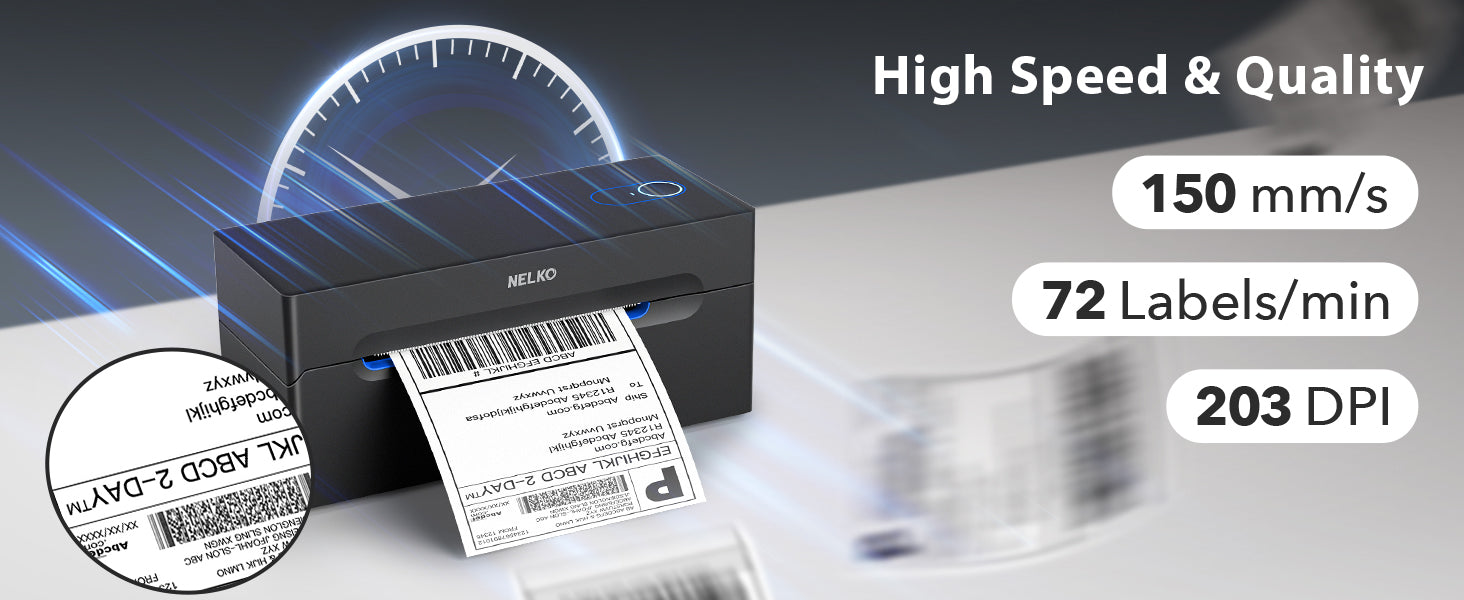 Enjoy sharp, ink-free prints with Nelko thermal paper and direct thermal technology. Supports labels 40-104mm wide.