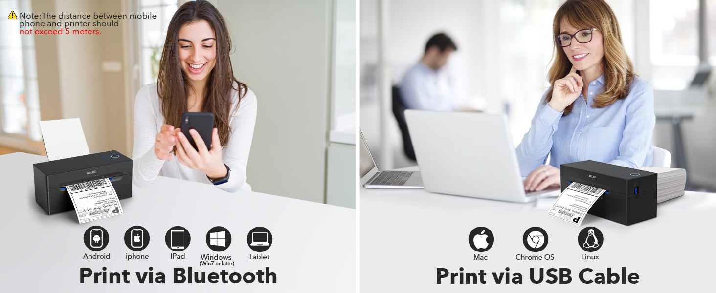 Yes, Nelko PL70e is compatible with both Windows (7 and newer) and Mac operating systems. 【Go Wireless by Bluetooth】For Windows 7 and newer computers you can print by downloading "Shipping Printer Pro" and connecting to Bluetooth. For Mac users with an M1 or M2 CPU, install the "Shipping Printer Pro" application from the App Store and use it to connect to the printer via Bluetooth. 【Print via USB】For Windows (7 and newer), Mac OS, and Chrome OS, you can connect the desktop label printer via USB cable. [Note that Mac OS only works with USB connection, you can not print via Bluetooth].