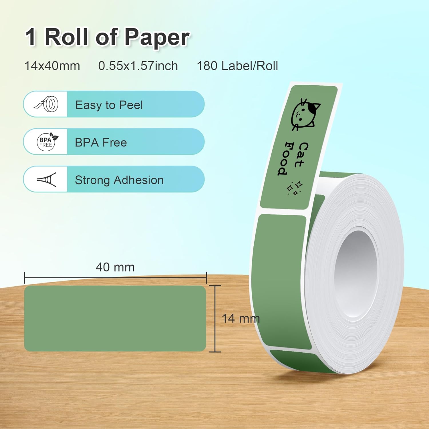 Nelko Genuine P21 Label Maker Tape, Adapted Label Print Paper, 14x40mm (0.55"x1.57"),Multipurpose of P21 Label Maker, 180 Tapes/Roll, 1 Roll, Army Green