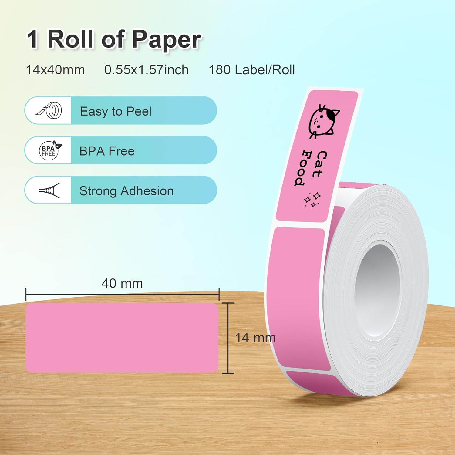 Nelko Genuine P21 Label Maker Tape, Adapted Label Print Paper, 14x40mm (0.55"x1.57"), Multipurpose of P21 Label Maker, 180 Tapes/Roll, 1 Roll, Rose Red