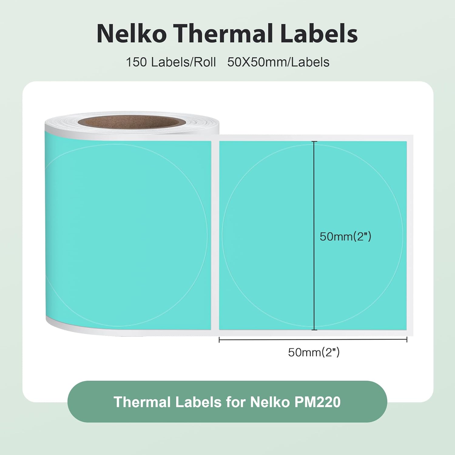 Nelko Labels for PM220, 2 inch (50mm) Round Thermal Label, 1 Roll of 150 Self-Adhesive Thermal Paper (Green)