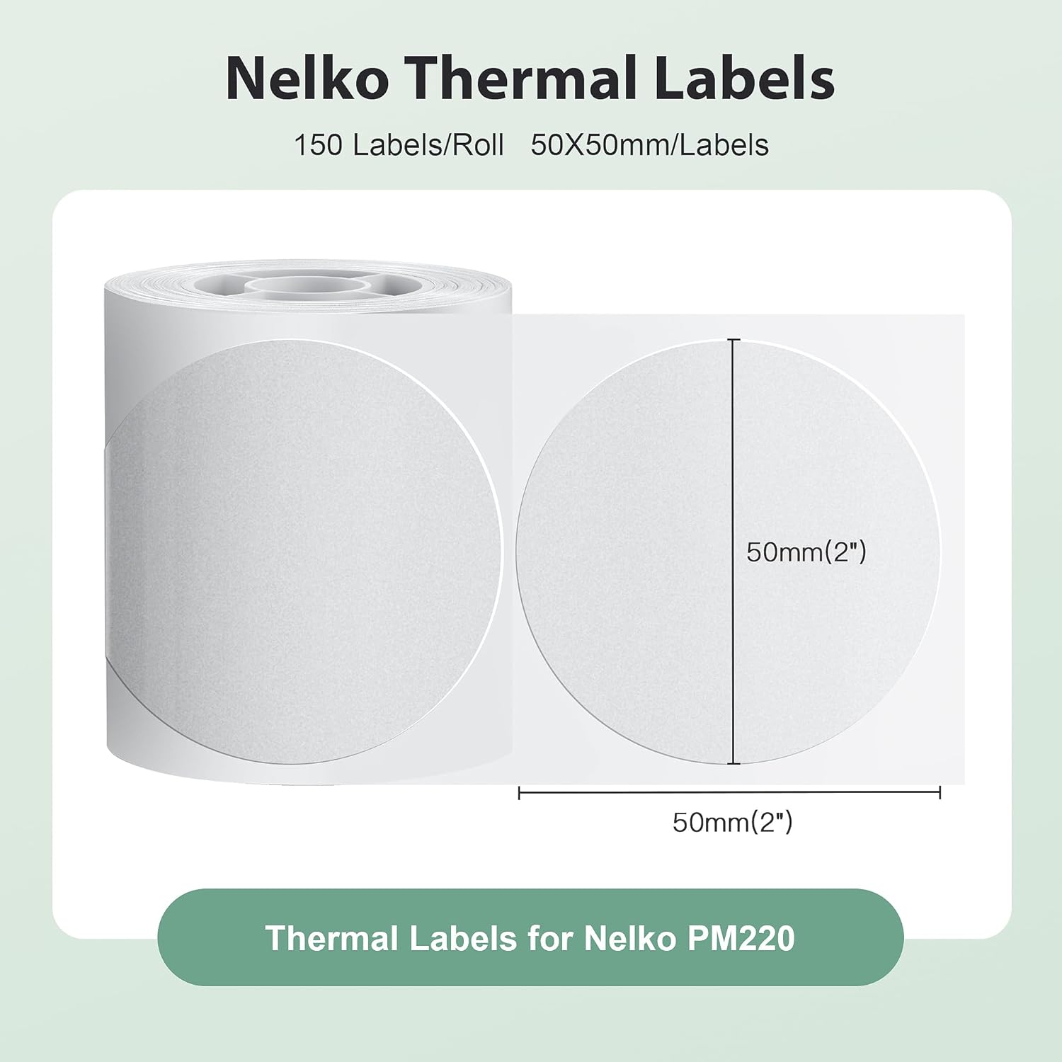 Nelko Labels for PM220, 2 inch (50mm) Round Thermal Label, 1 Roll of 150 Self-Adhesive Thermal Paper (Transparent)