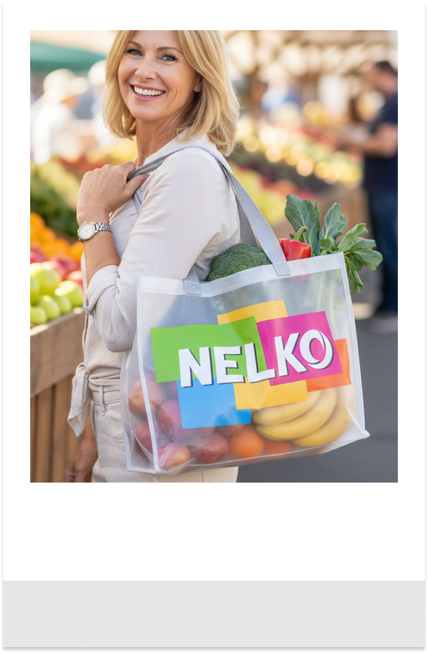 Features the iconic NELKO vibrant logo to elevate your everyday errand run