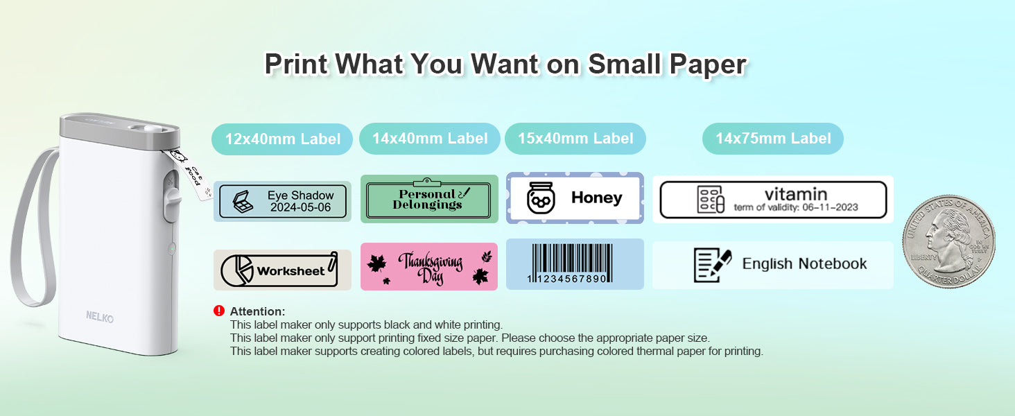 ✅【Multiple Creative Function&Templates】This app of the bluetooth label maker provides various free features and templates, easy to create various design label stickers from AppThe length of labels is fixed, including 12X40mm, 15X30mm, and 15X50mm.