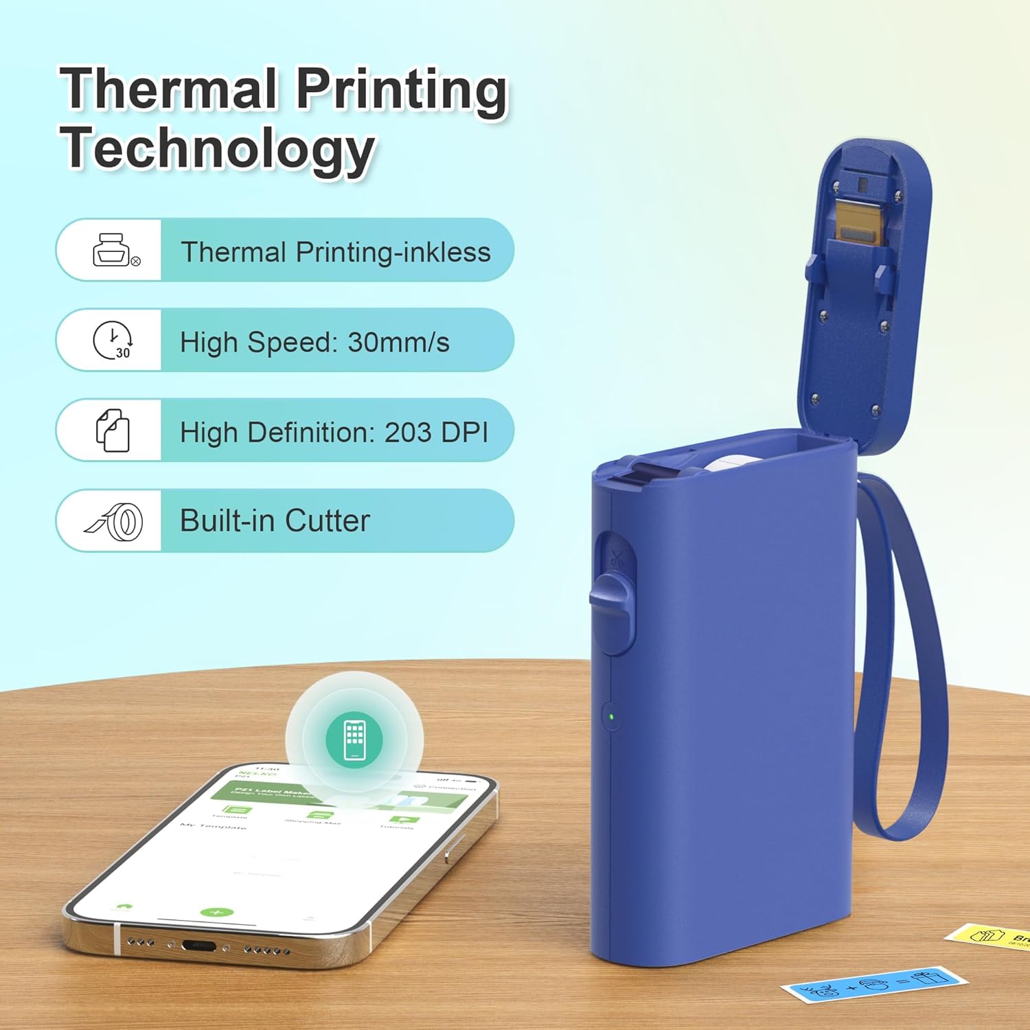 - High-quality Printing: Label Makers with BPA-Free Direct Thermal Technology. Equipped with high-speed chips and 203 DPI, you can enjoy high-definition without relying on ink or toner. Label maker built in durable rechargeable battery, it can work for a long time. This label maker is monochrome printout, which only prints black text. We can create color label and need to use color pattern label tapes for printing.(Note: Not including charging adapter, not suitable for fast charging adapter)