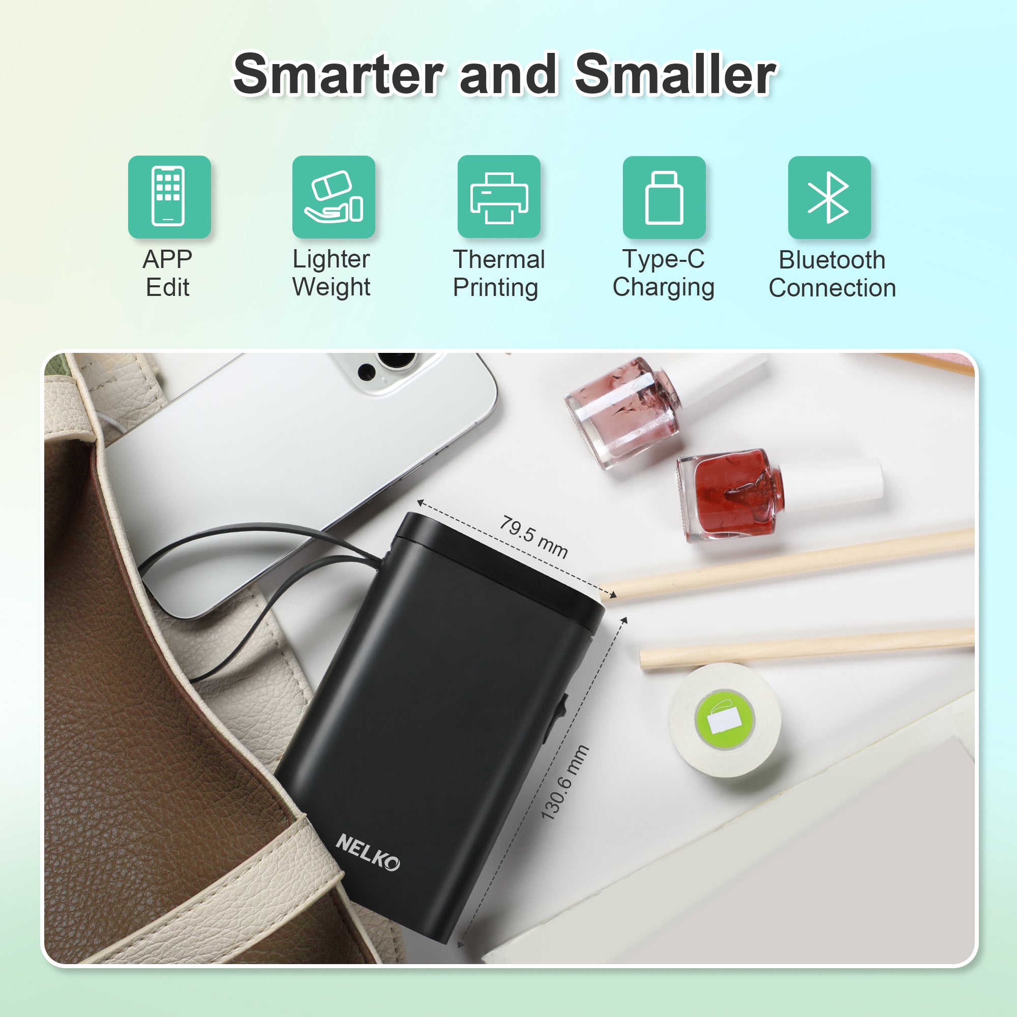 - ✅【2023 New Version】Compared with the traditional label makers, half weight and size of the traditional label maker, smaller, smarter and convenient for users to carry. Wireless bluetooth label maker can slip into your pocket, allow printing anytime, anywhere. We recommend using our NELKO thermal label paper for better printing quality.