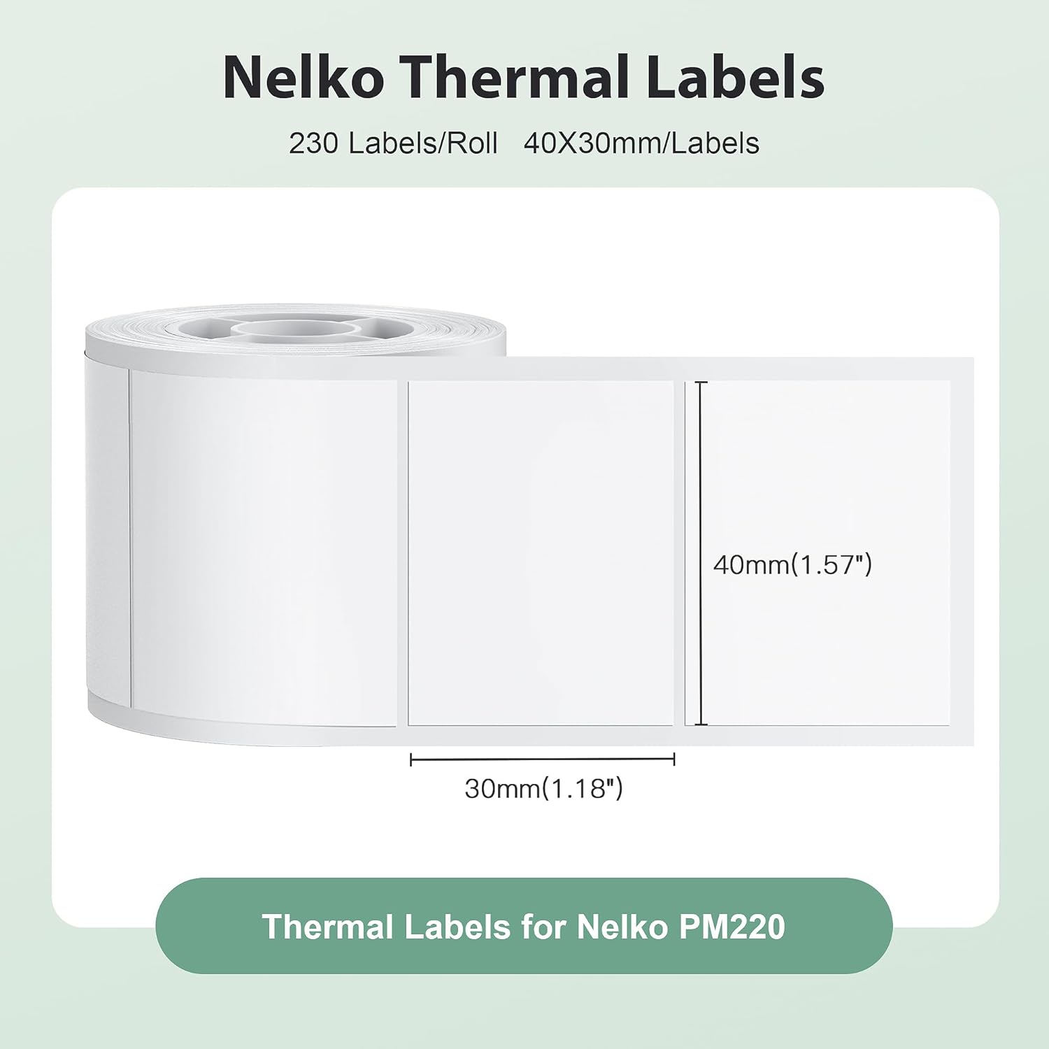 - Specifications- Label Size: 1.57"x1.18" (40x30mm). Quantity: 3 Rolls, 690 labels. Color: White. Genuine themal label tape compatible with Nelko PM220 label maker, it may not work on other label makers