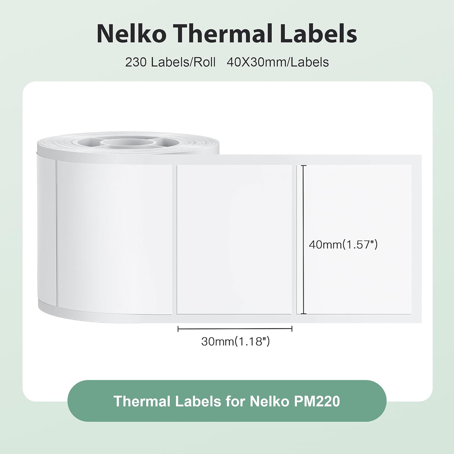Nelko Labels for PM220, 1.57'' x 1.18'' (40x30mm) Thermal Sticker Label, 1 Roll of 230 Self-Adhesive Thermal Paper (White)